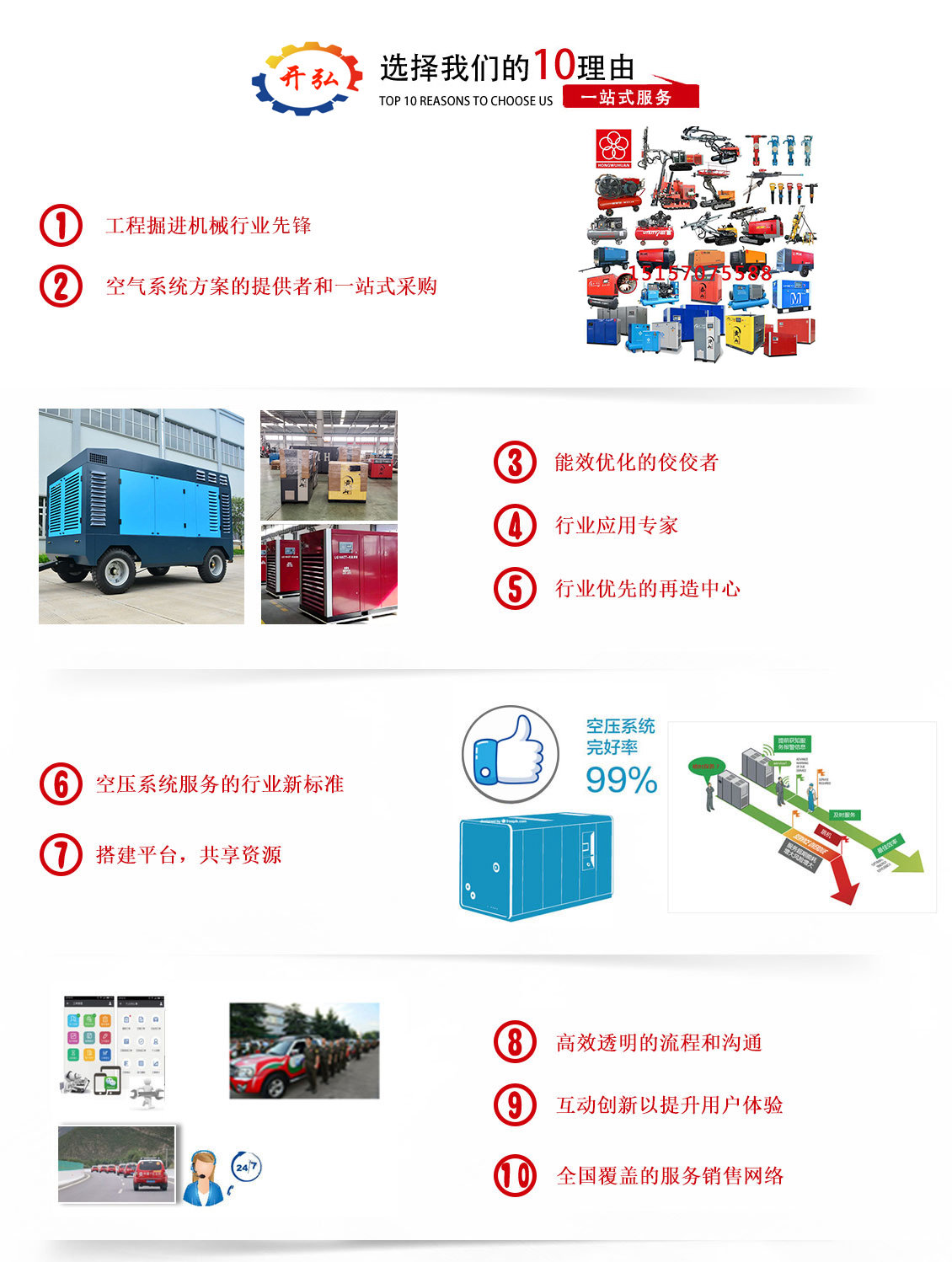? ? ? ? 我公司始終堅持紅五環(huán)經(jīng)營戰(zhàn)略,堅持中高端品牌空壓機、鉆機的經(jīng)營發(fā)展思路 ,專業(yè)于品牌空壓機、鉆機的銷售與維修服務,并提供空壓機、鉆機維修及零備件供應(鉆桿,鉆頭,沖擊器等鉆機配件;空氣濾芯、機油濾芯、油氣分離器、專用潤滑油、冷卻液……